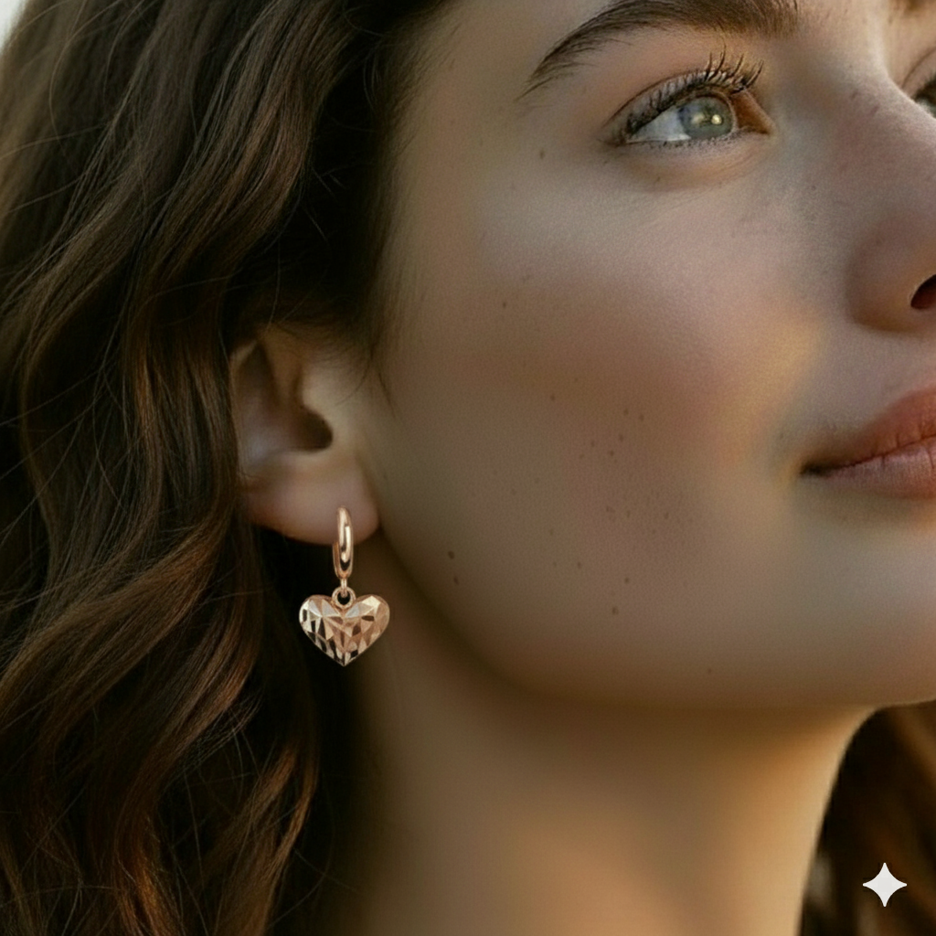 Capture the light and radiate elegance with our "Aura" Diamond-Cut Heart Hoop Earrings. Designed for the modern romantic, these exquisite earrings blend timeless affection with contemporary sophistication, making them the perfect signature piece for any occasion.